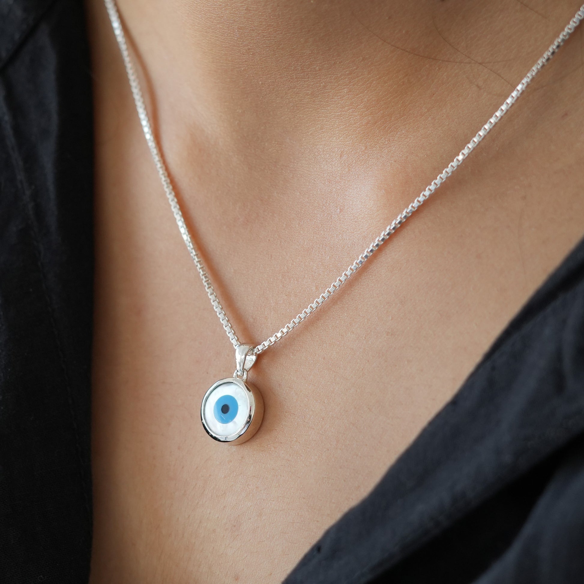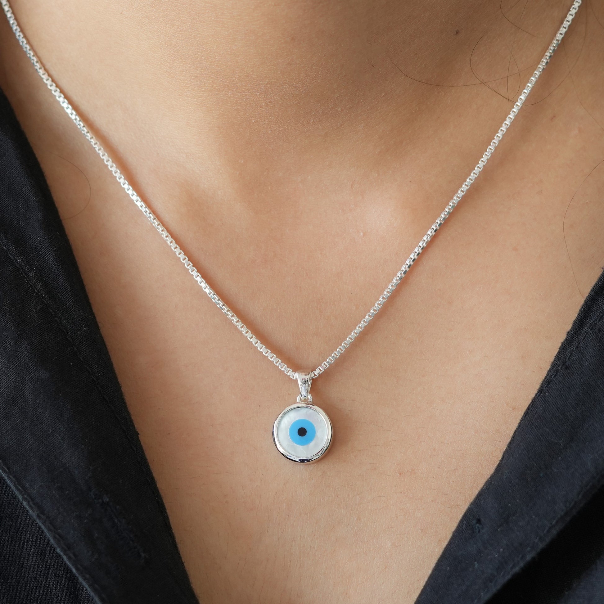 Classic Round Mother of Pearl Evil Eye Pendant