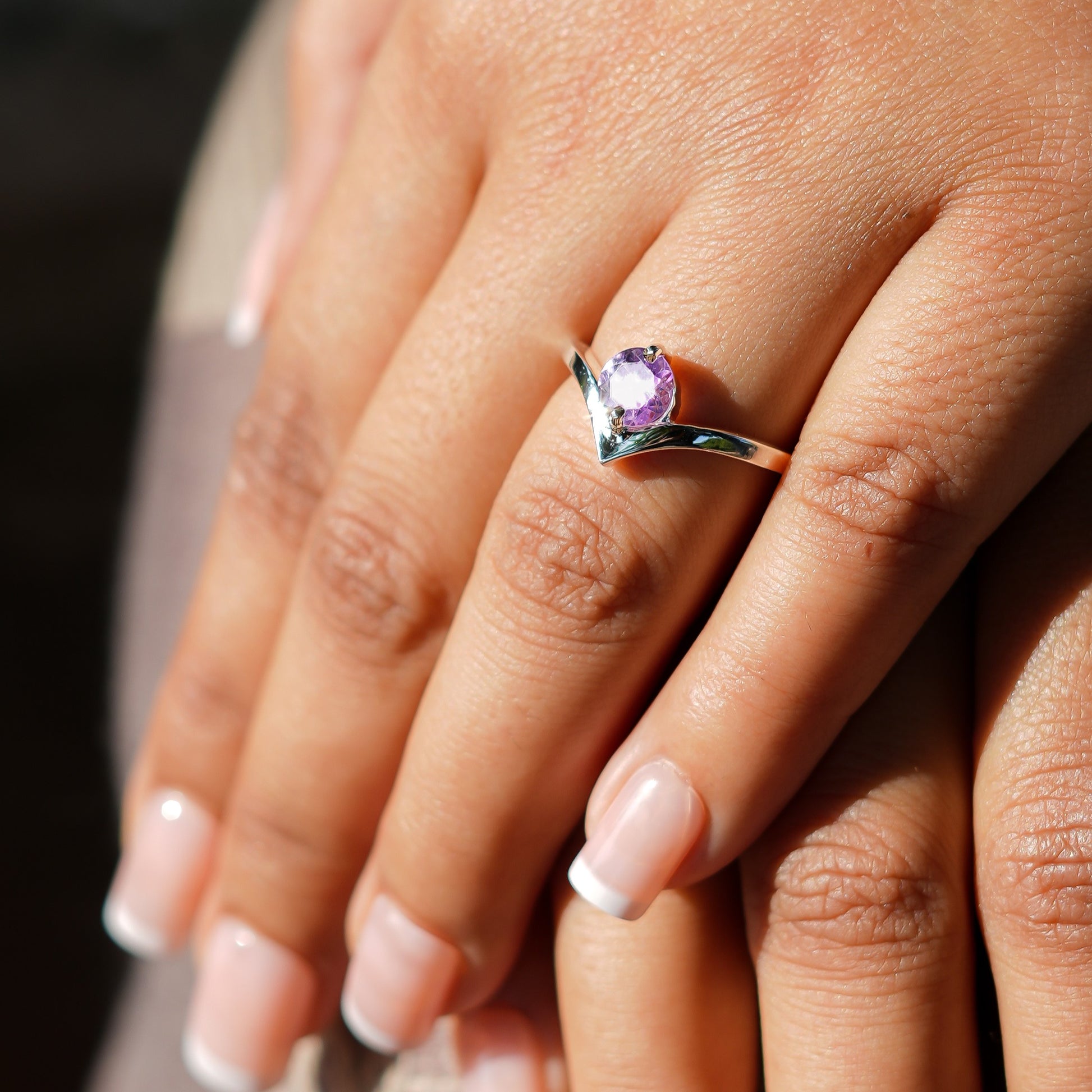 Natural Amethyst Ring - 925 Sterling Silver